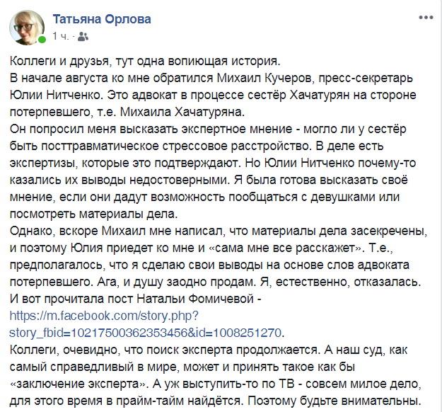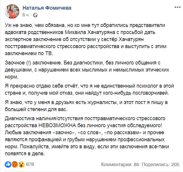 Адвокат "потерпевшей стороны" в деле сестер Хачатурян бегает по психологам с просьбой дать заключение о том, что у девушек не было посттравматического расстройства. Ну, понимаете, такие стойкие девчушки - отец их регулярно насиловал и избивал, а они держались, как стойкие оловянные солдатики. Причем психолог должен был дать "экспертное заключение" безо всяких встреч с девушками, а просто на основе беседы с адвокатом, который, видимо, мамой должен был поклясться, что расстройства не было и зуб дать.