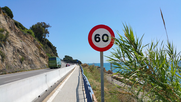 Такая дорога только 1,5 км (да и трасса не слишком оживленная) - остальное все строго вдоль моря, трасса далеко.