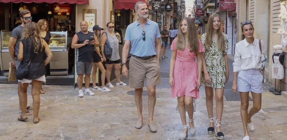 Тем временем испанская королевская семья на отдыхе на Майорке. Странные они какие-то: ни лимузинов, ни толп охранников (хотя какая-то скрытая охрана, безусловно, есть) - гуляют себе среди туристов по городу.