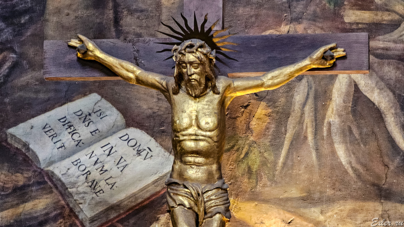 Иисус Христос в часовне почему-то изображен с трогательными грудками - ну, возможно, художник просто так видит.