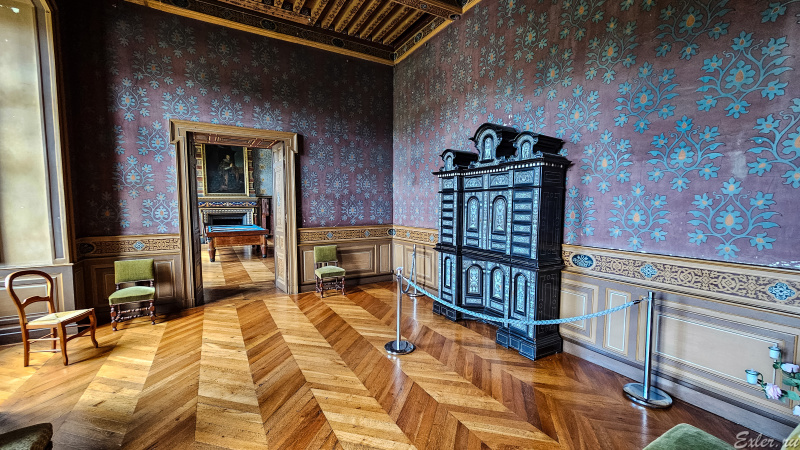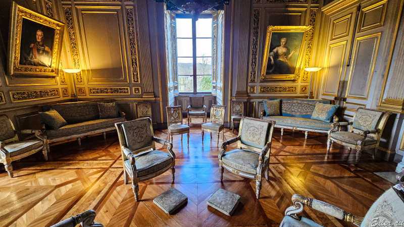 Комната отдыха, декорированная специально для визита короля. И после визита Людовика XIV, ее еще и отделали золотом - в память об этом величайшем событии в жизни семьи владельцев замка.