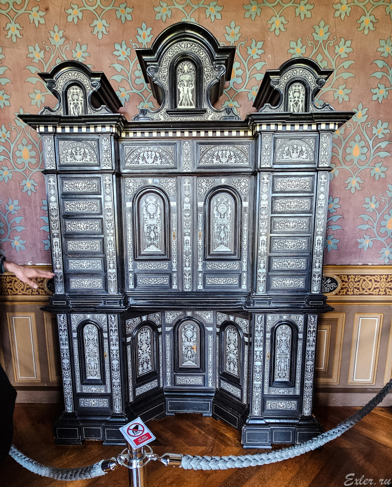 Секретер отделан украшениями из слоновьей кости и, по словам гида, если бы этой отделкой занимался один человек, то у него на данную кропотливую работу ушло бы лет тридцать.