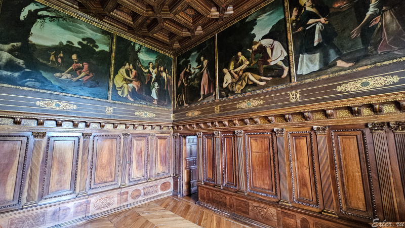 Картины, иллюстрирующие библейский сюжет, и отделка стен кабинета.