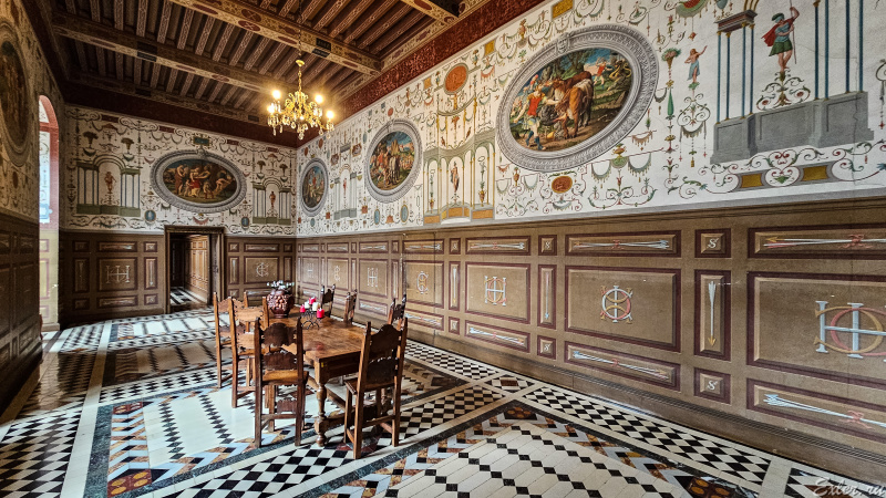 Замок открыт для посещения, по нему водят экскурсии, и у нас была возможность ознакомиться с его интерьерами - вот небольшой фоторепортаж.