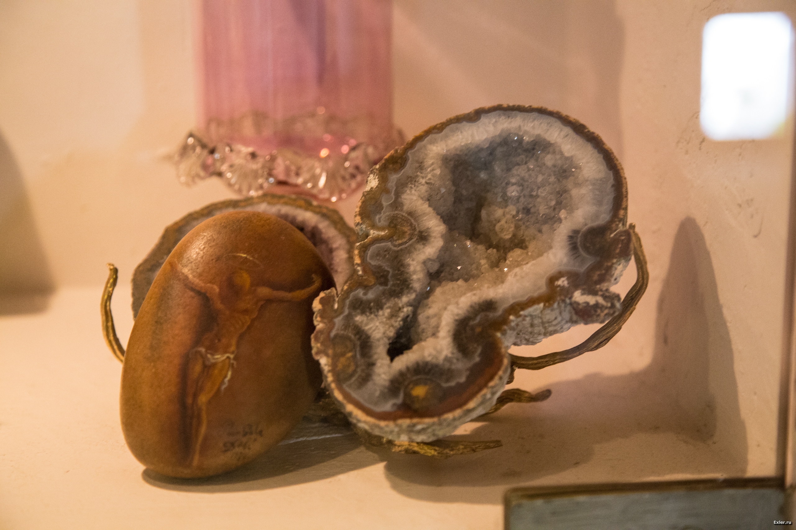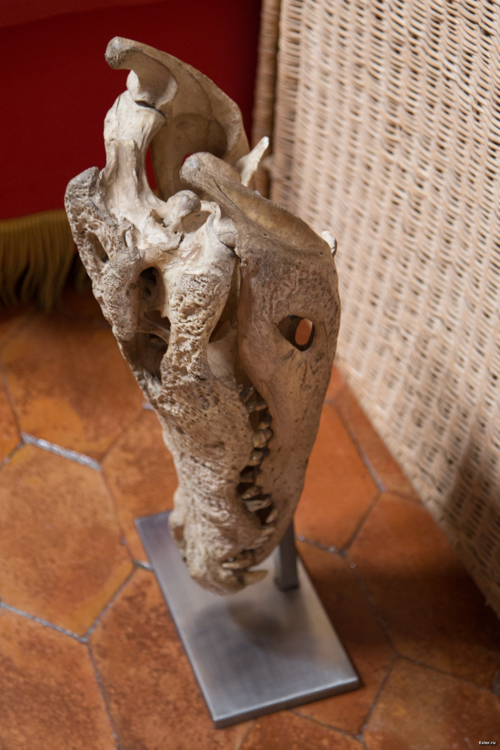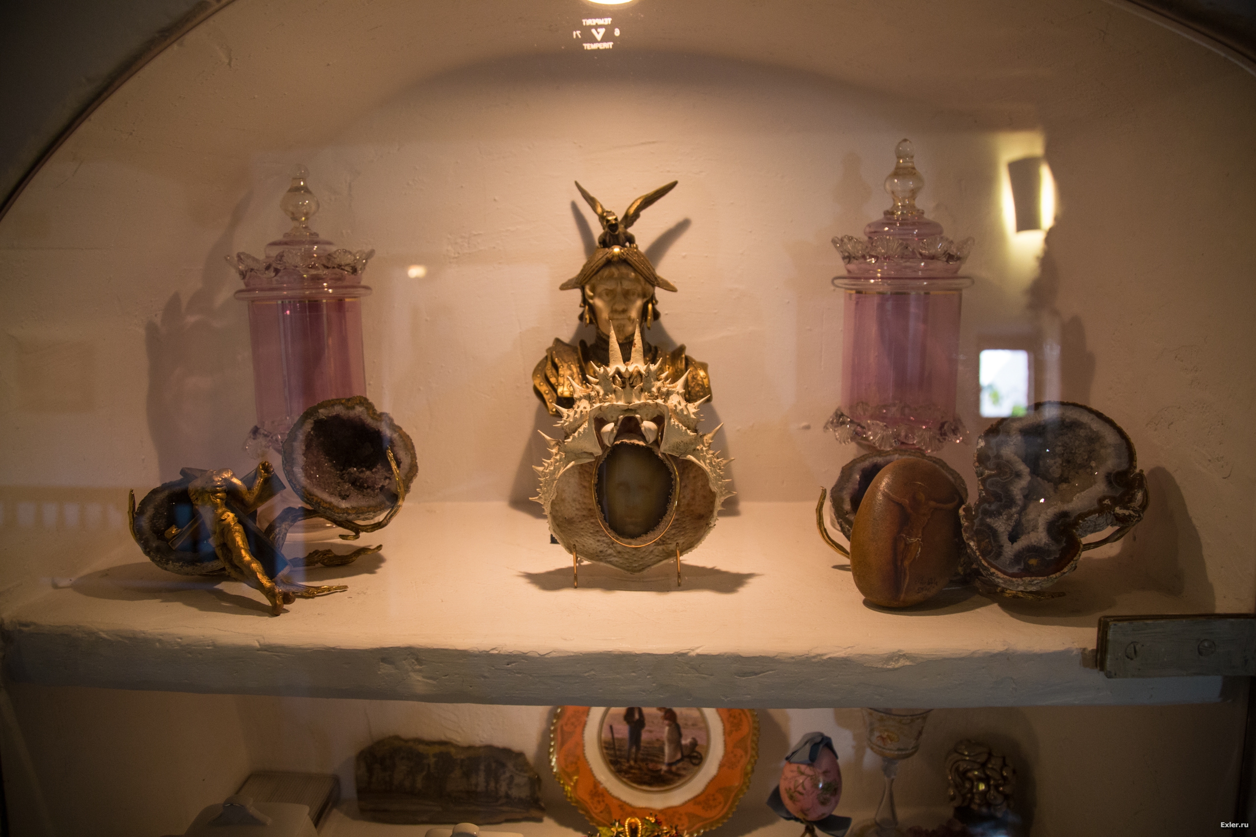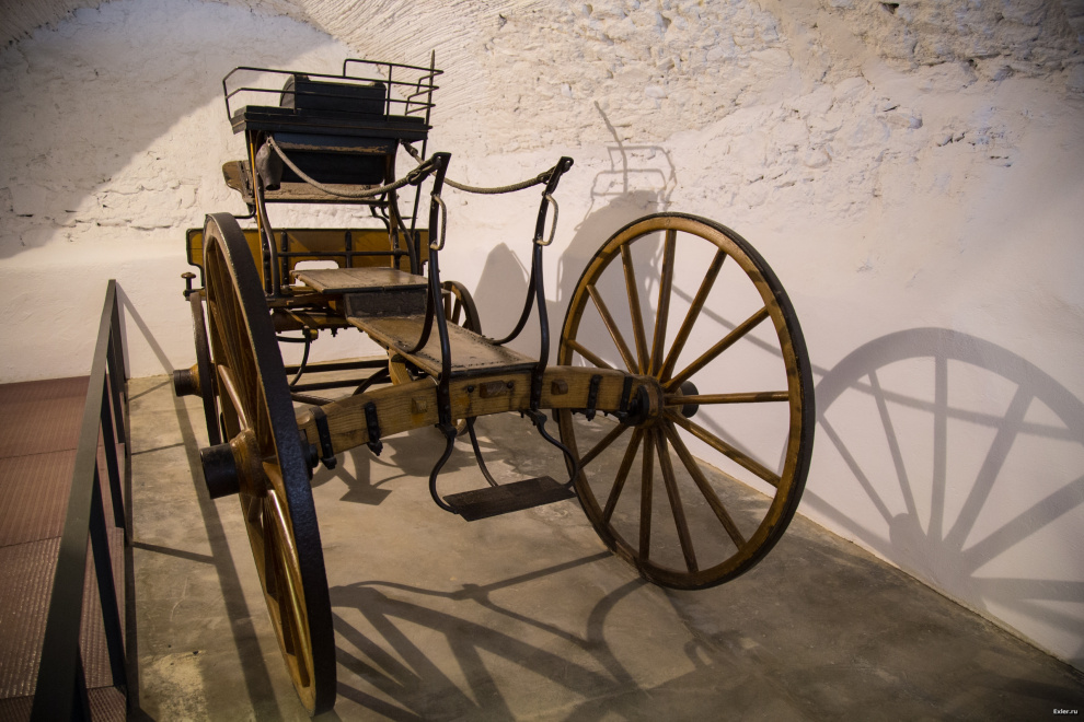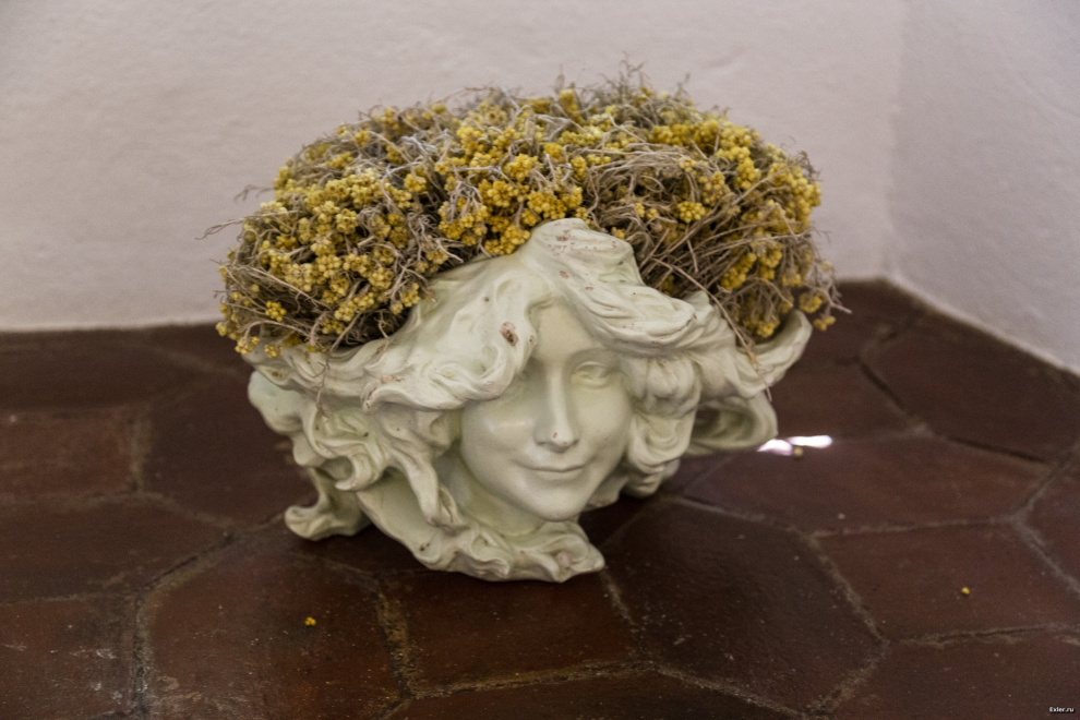 На этой фотографии виден столик, но котором стоит ваза. Так вот, этот столик - не совсем столик. Это колодец в гараж, на который положено стекло. А если взглянуть вниз, можно увидеть то-ли карету, то-ли чучело лошади.