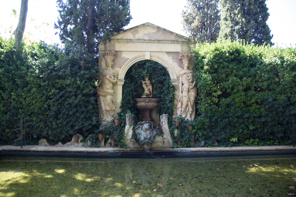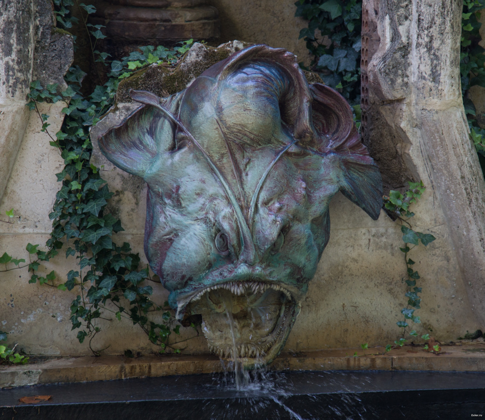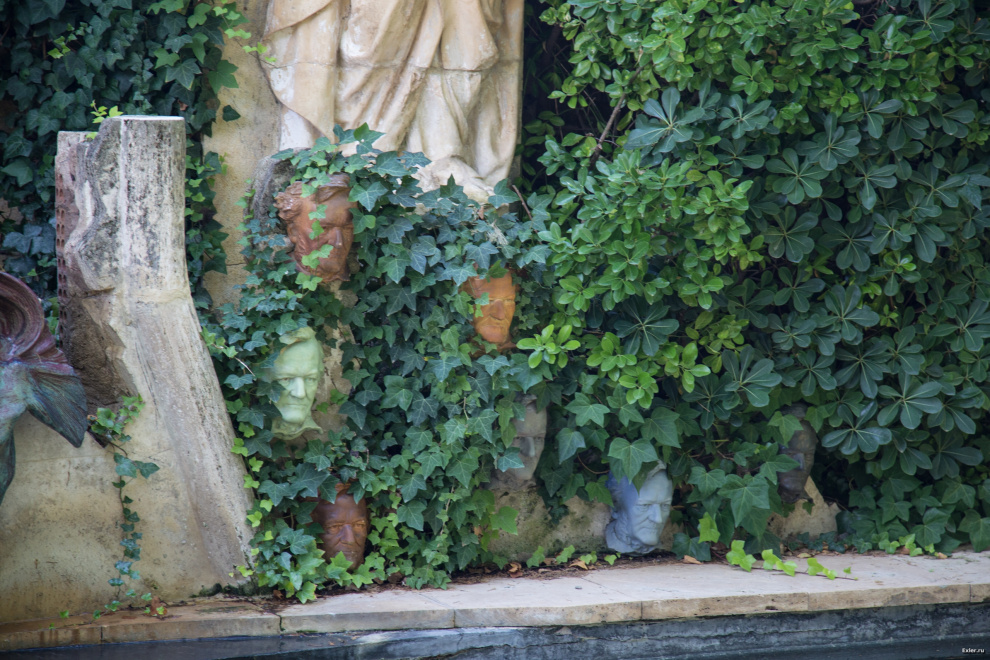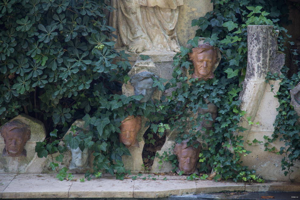 Фонтанчик декорирован разноцветными головами композитора Вагнера.