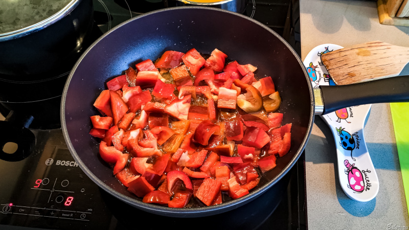 Обжарил перец, масло после жарки, как учили, слил - для следующего продукта.