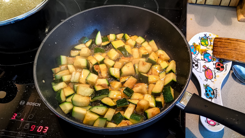 На том же масле обжарил кабачок.