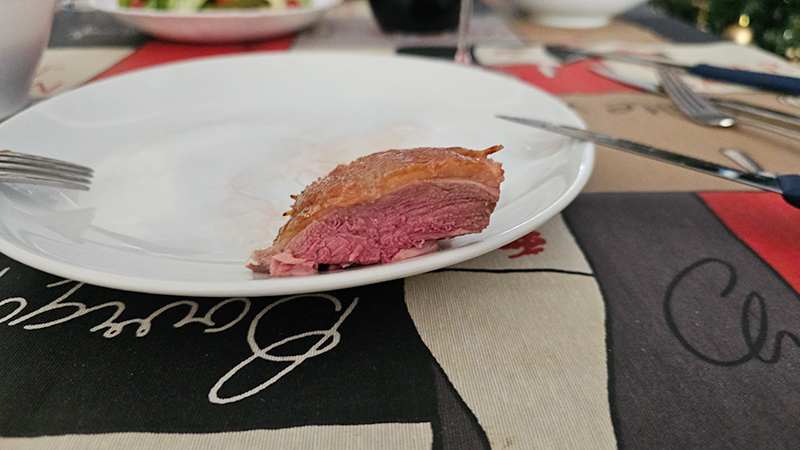 С ножками ожидаемо было все сильно хуже - они банально получились недоготовленные. Ну, то есть есть можно, но не нужно - жестковатые. Но ножки спокойно можно довести в аэрогриле или под давлением пара, и у меня, как я уже говорил, главная задача была - добиться правильной грудки, которая все-таки составляет примерно 70% всей прелести тушки утки.
