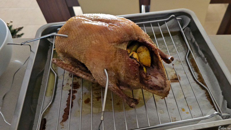Вот такой у меня получился первый опыт с запеканием тушки утки.