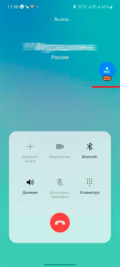 На скриншоте кнопка Truecaller, а не самсунговская запись.