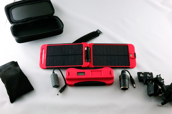 Батарею можно заряжать с помощью универсального сетевого зарядного устройства, с помощью солнечной панели или через USB.