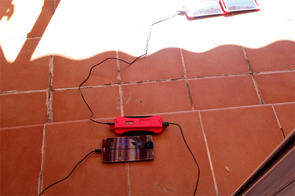 Разумеется, интереснее всего было потестировать, как батарея заряжается от солнечной панели. Процесс заряда там, понятное дело, идет очень небыстро, но где-то за 12 часов на солнце батарея у меня зарядилась с нуля на 63%. Чтобы полностью зарядиться от солнечной панели батарее требуется где-то 18-20 часов нахождения панели на прямом солнце. При этом от одного заряда аккумулятора можно зарядить, например, 4-6 смартфонов или пару планшетов.