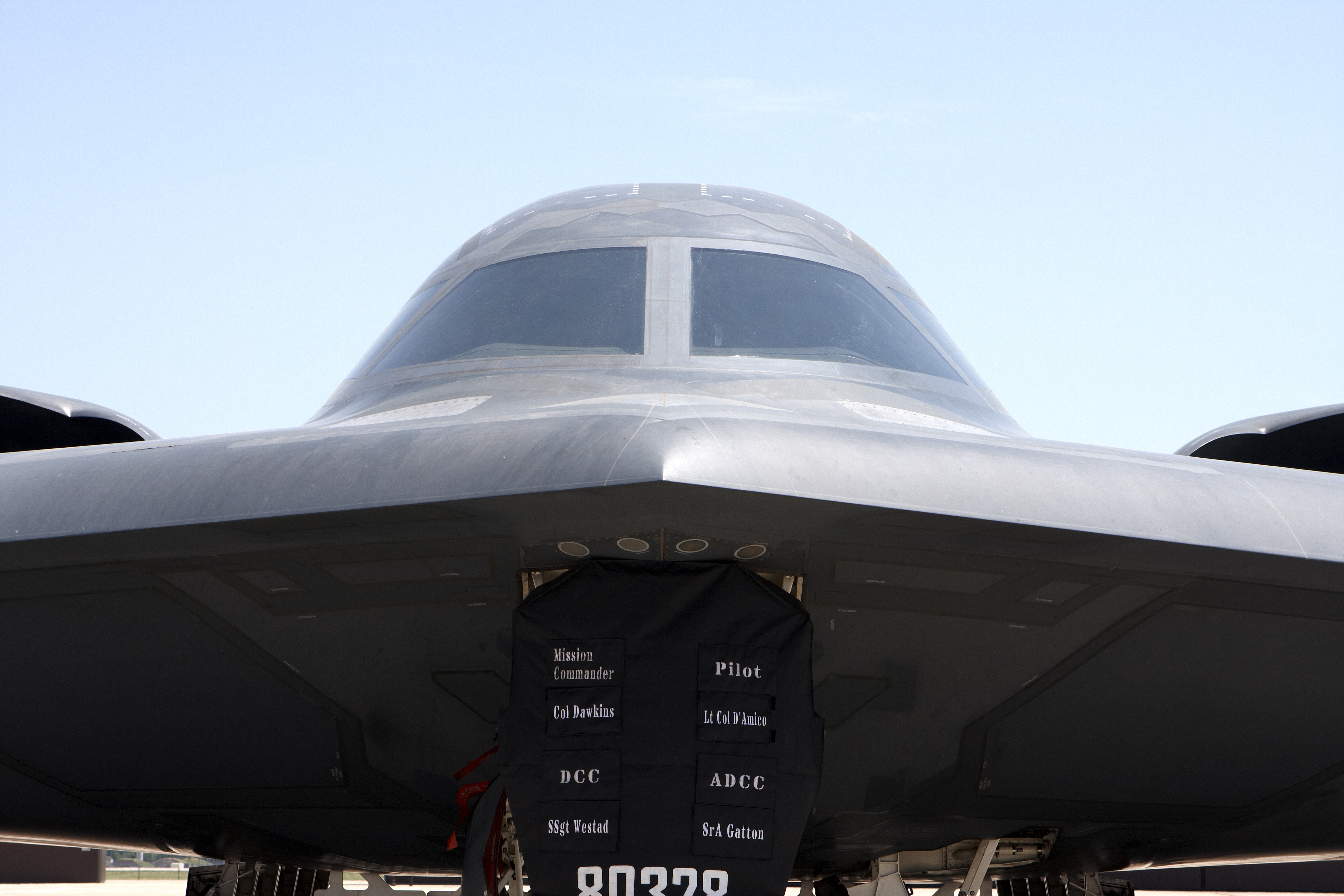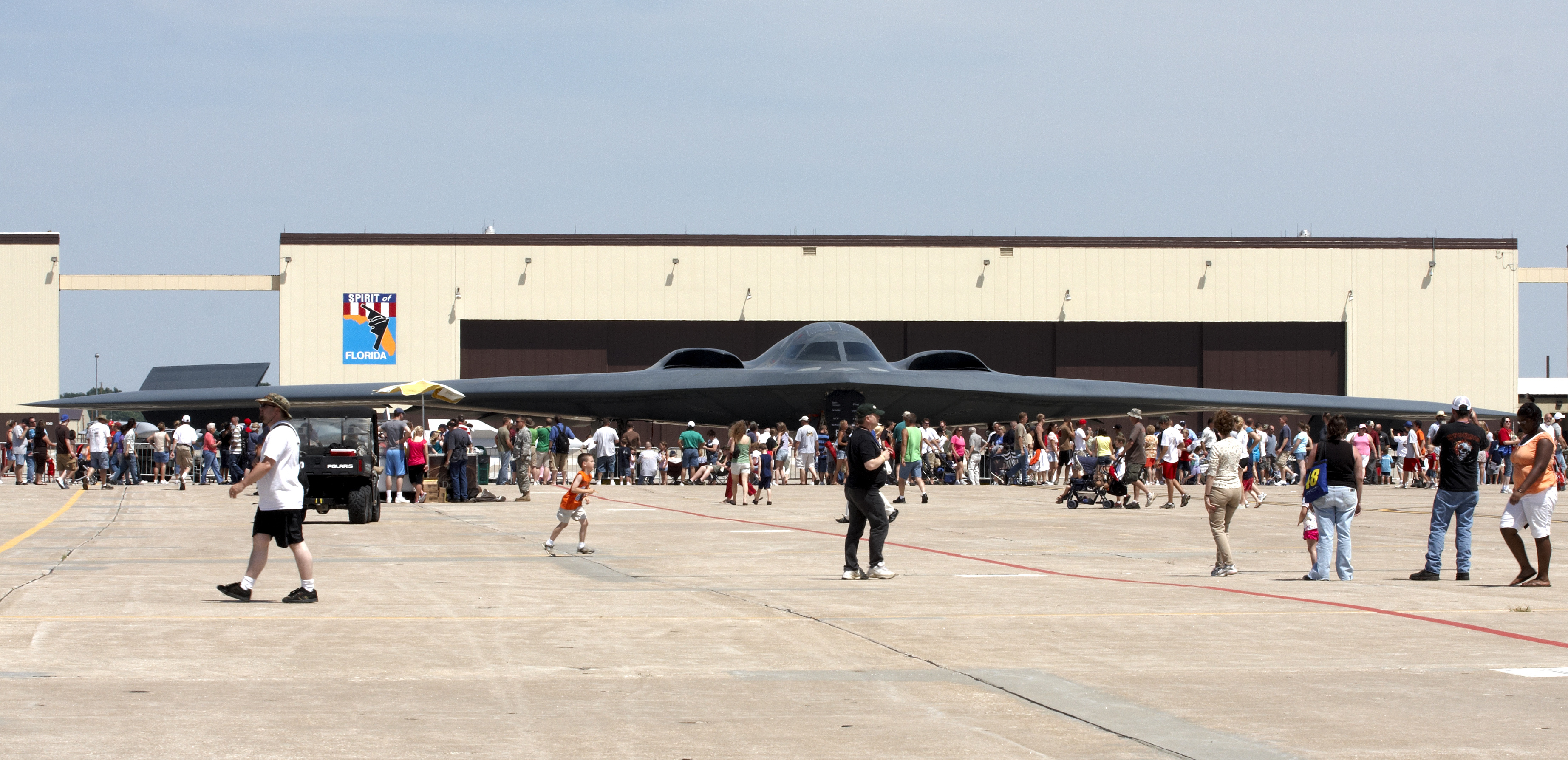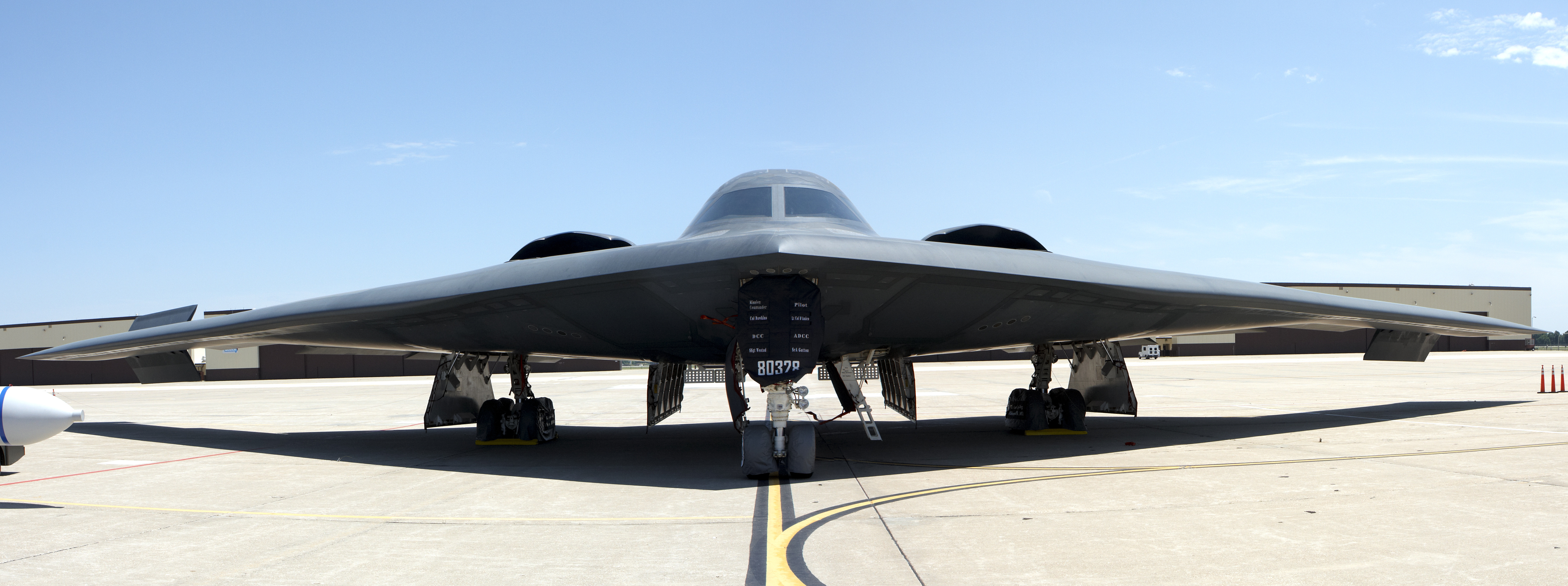 B2 видно на гугл картах стоящим на аэродроме на базе, где он базируется Whiteman Air Force Base (вбейте прямо в гугл карты это название). Там прикольно видна его разница в размерах по сравнению с истребителями, насколько он огромный.