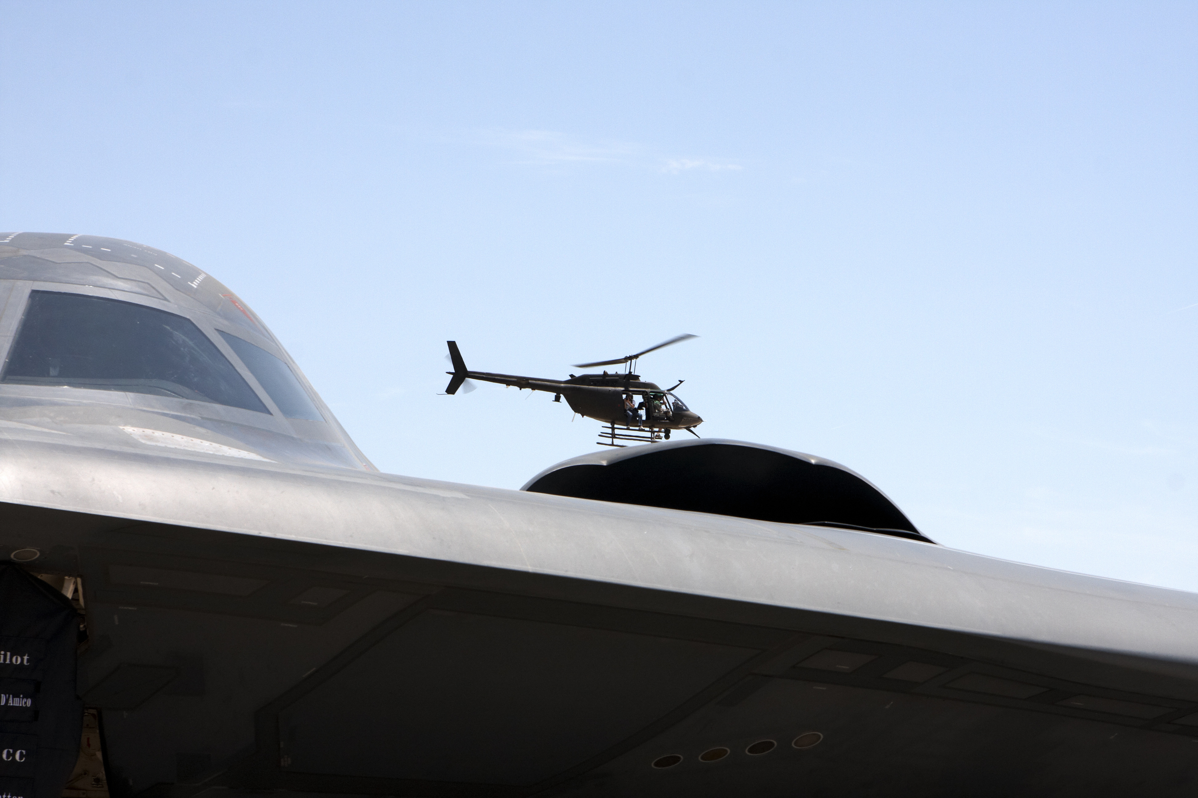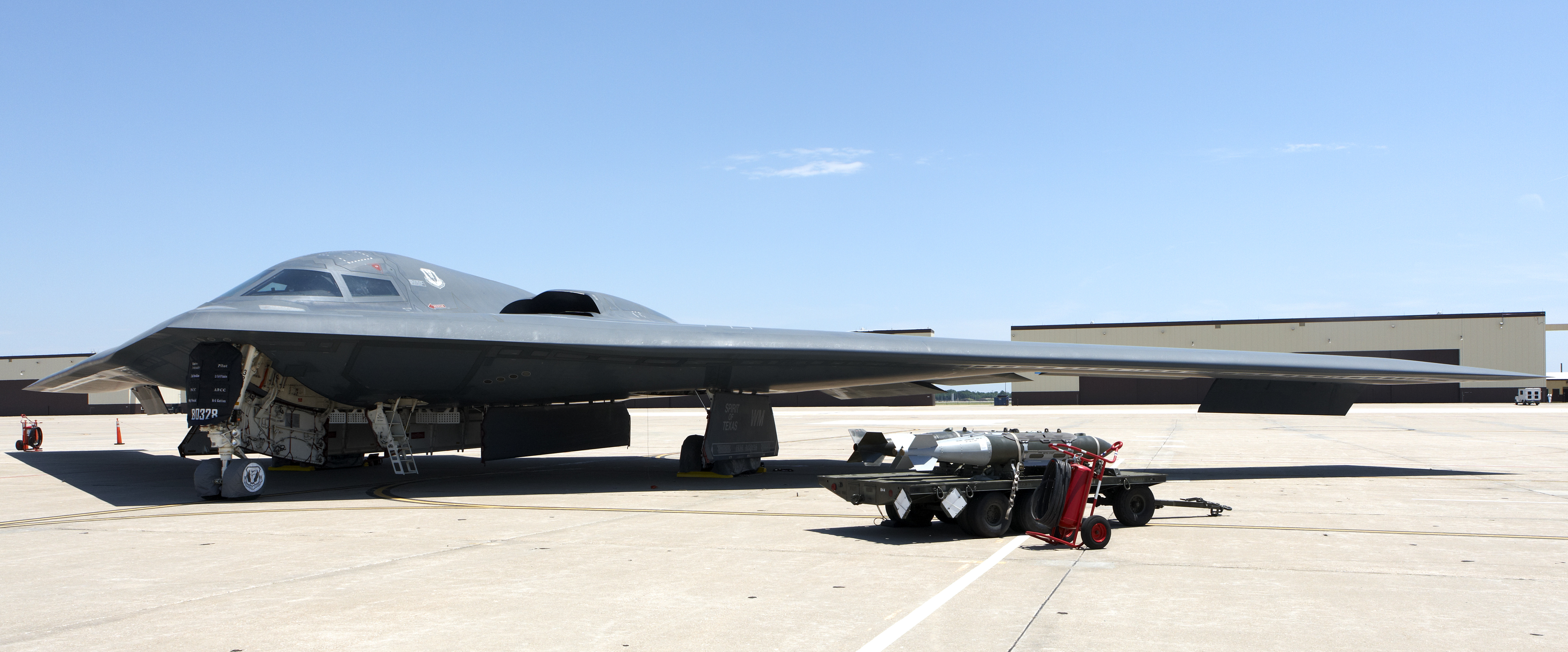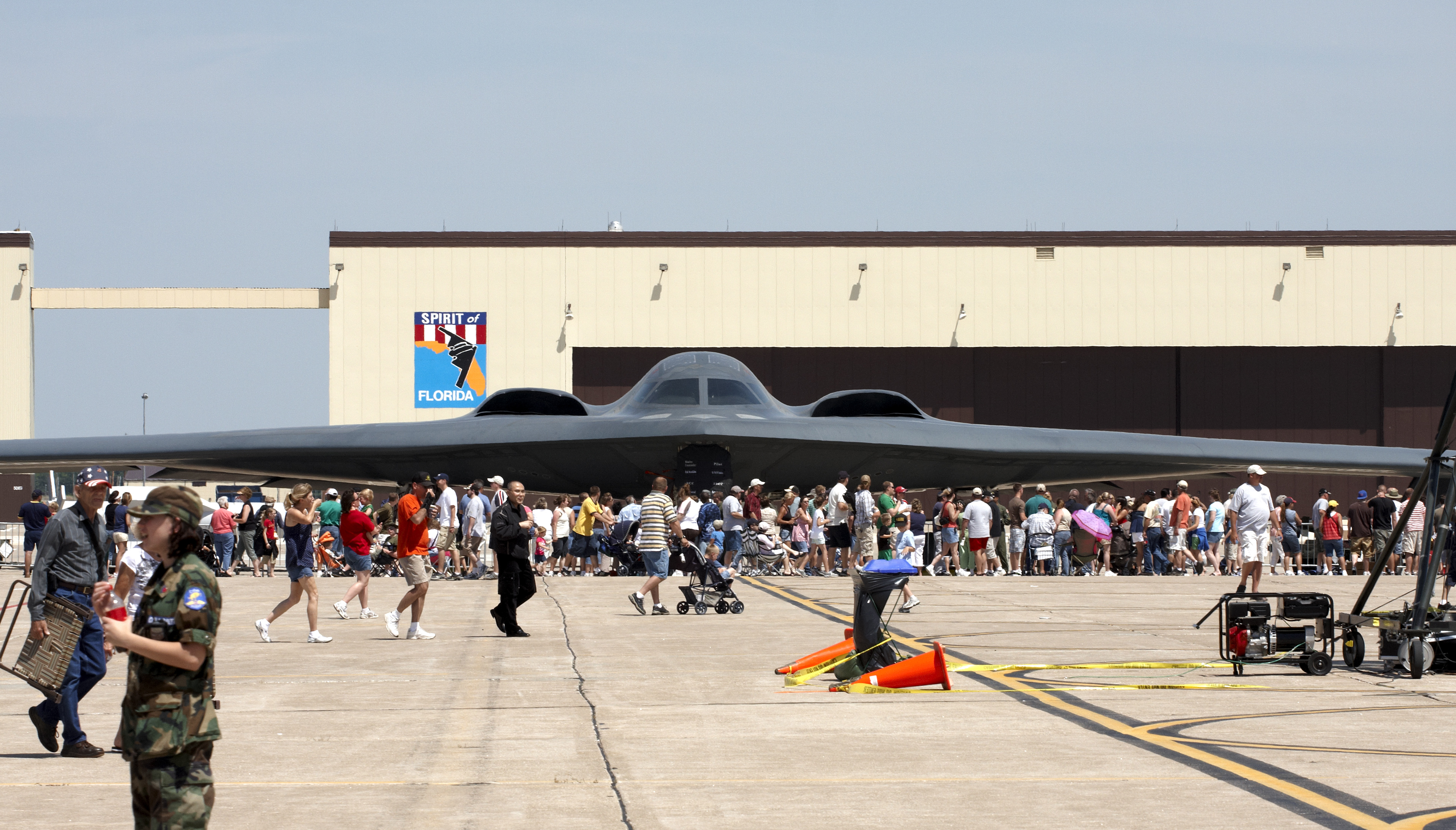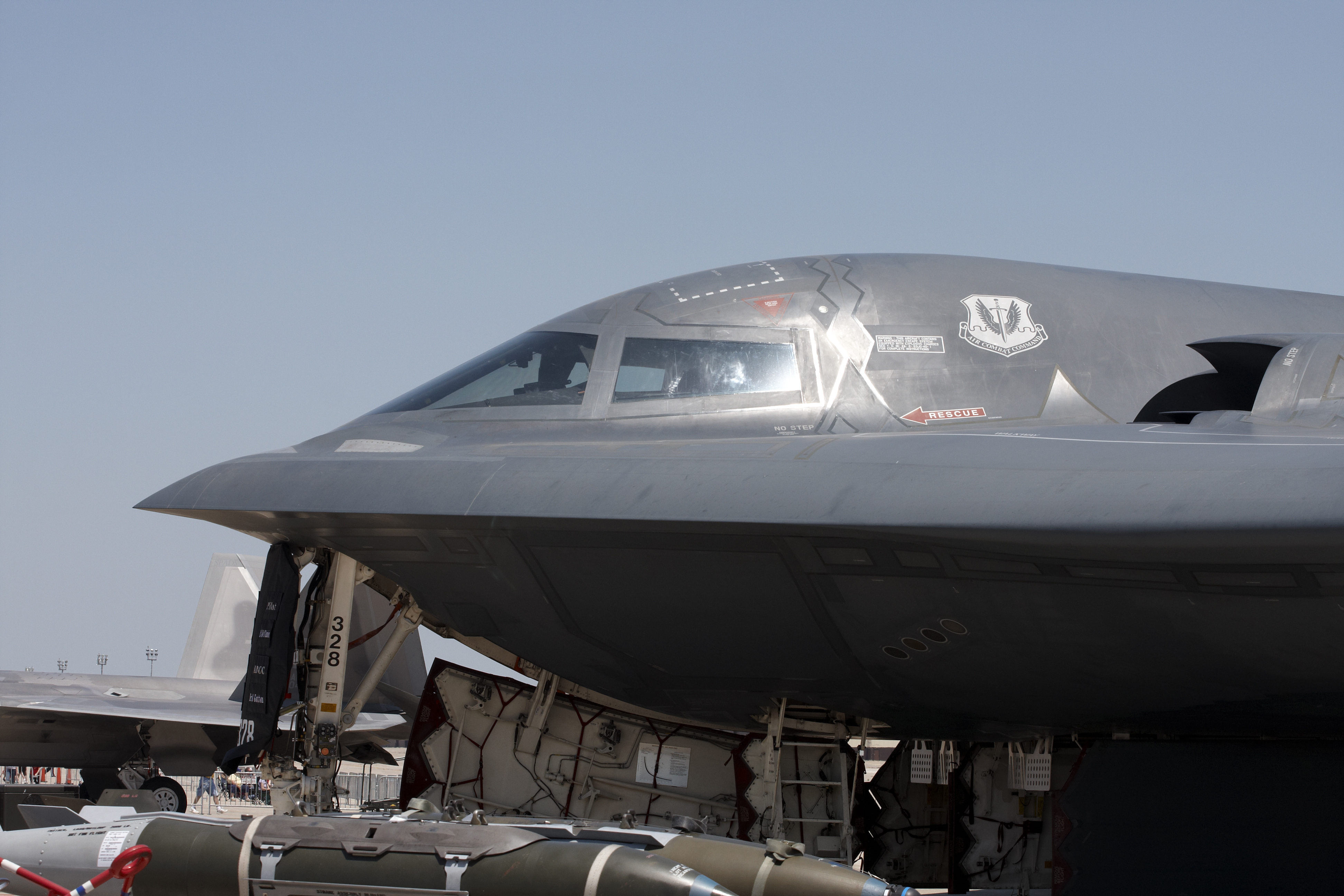 B2 видно на гугл картах стоящим на аэродроме на базе, где он базируется Whiteman Air Force Base (вбейте прямо в гугл карты это название). Там прикольно видна его разница в размерах по сравнению с истребителями, насколько он огромный.