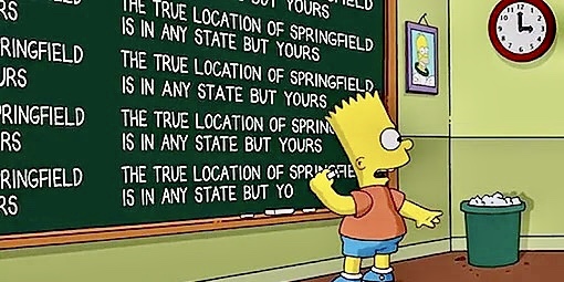 Внизу расположен Springfield — там живёт типичная американская семья Симпсонов. Я подозревал, что мультфильм основан на реальных прототипах. ?