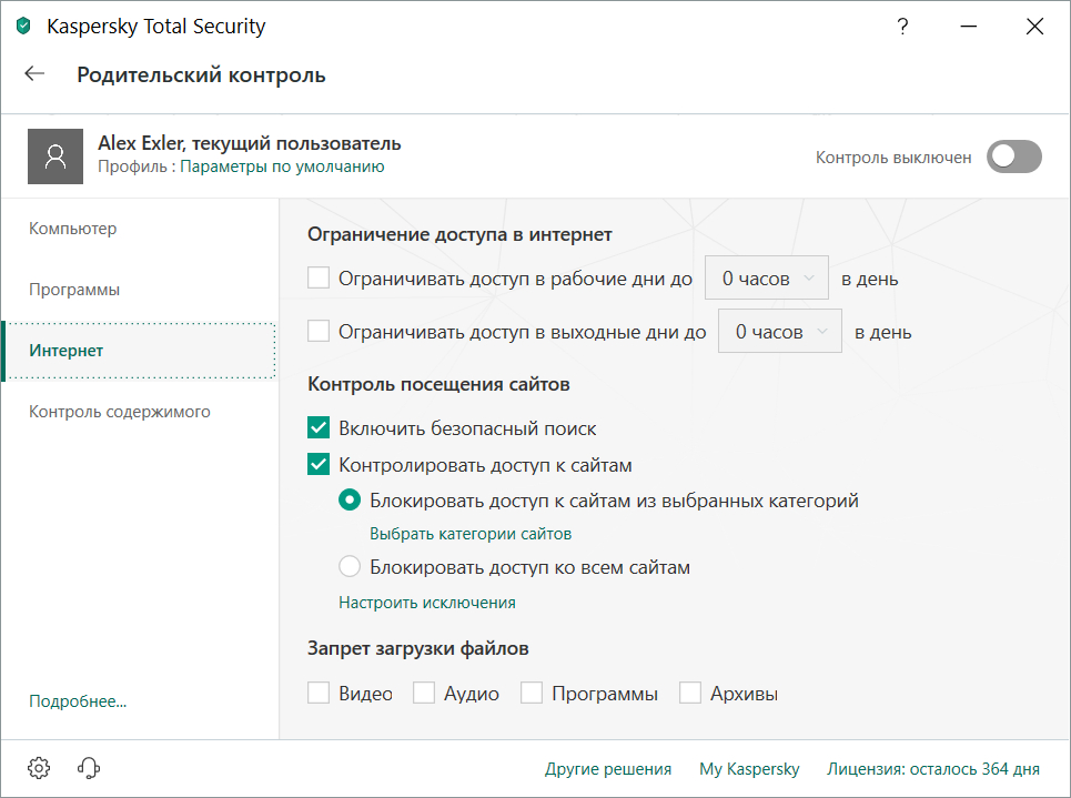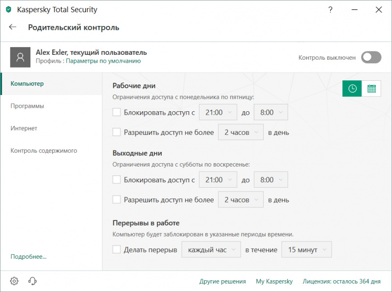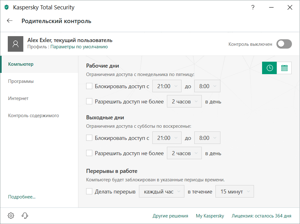 Вот возможности родительского контроля - именно то, что мне требуется.