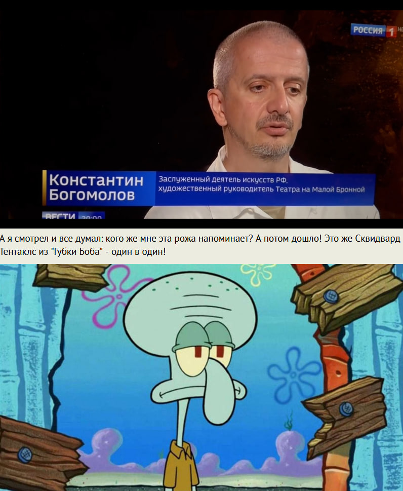 А я смотрел и все думал: кого же мне эта рожа напоминает? А потом дошло! Это же Сквидвард Тентаклс из "Губки Боба" - один в один!