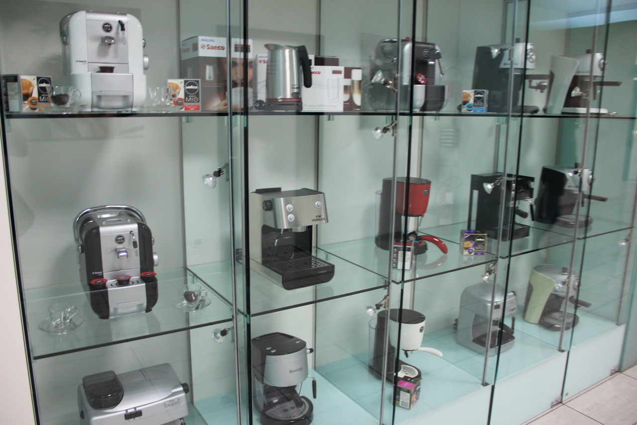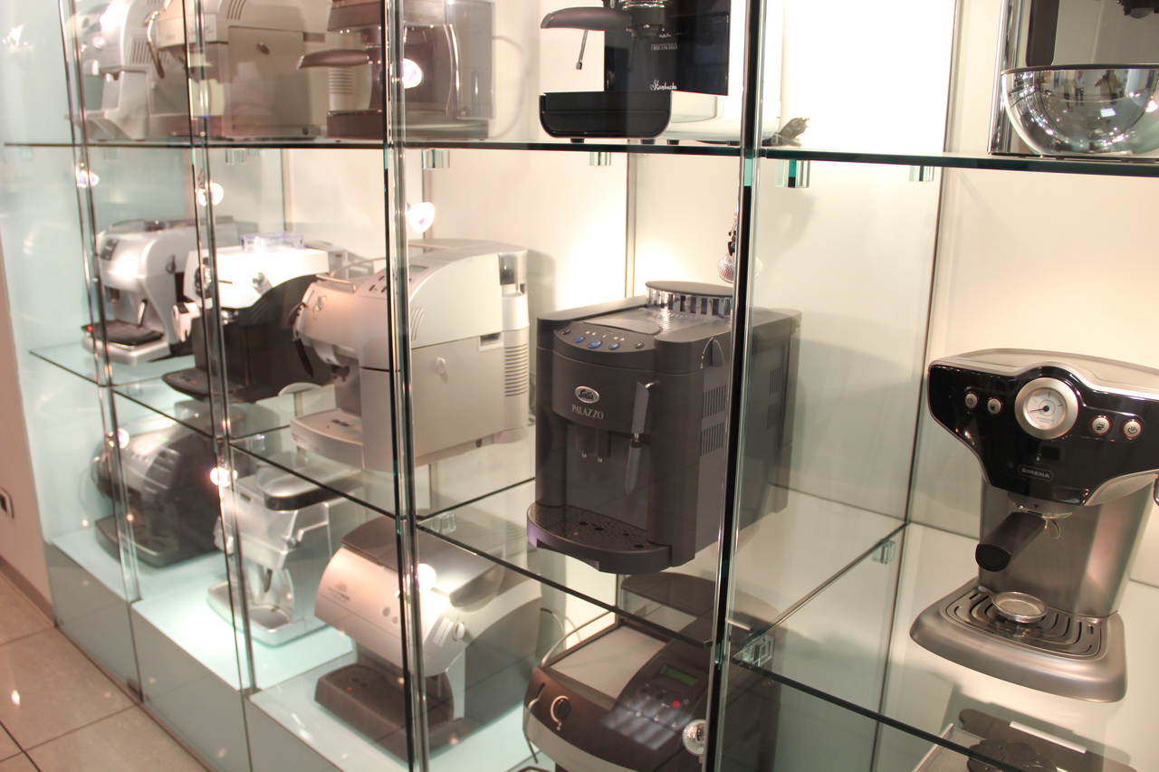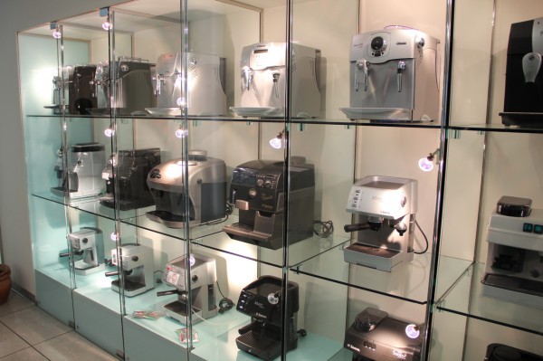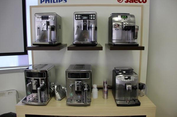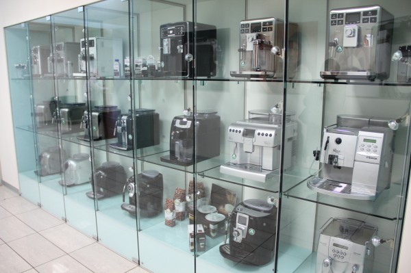 В демонстрационном зале стоят самые современные машины Saeco, которые выглядят как уменьшенные космические корабли - дизайн у них действительно шикарный.