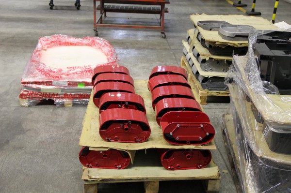 На производстве было очень тихо и очень чисто. По основным дорожкам туда-сюда снуют всякие кары с запчастями и какими-то коробками, для пешеходов сделан специальный тротуарчик безопасности.
