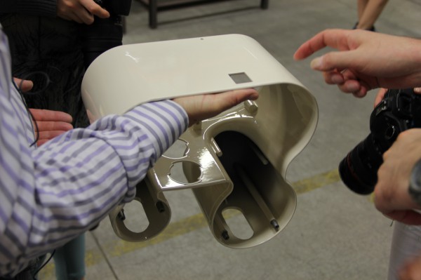 А вот этот робот нам понравился больше всего. Он красит корпусы сложной формы. За тем, как робот работает, можно наблюдать часами.