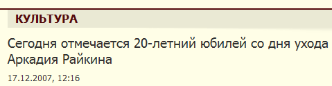 Заголовок теперь такой "20 лет назад от нас ушел великий Аркадий Райкин".