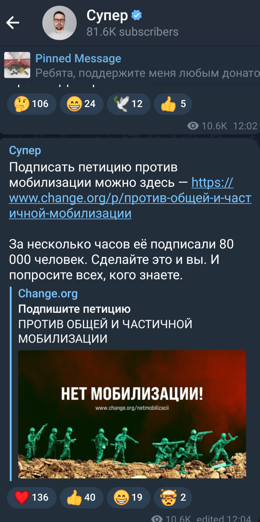 Но конечно цифры у Шойгу - огонь. То есть они потеряли всего 6к человек, 90% раненых вернулись в строй, Украина потеряла полармии (там 70к только убитыми и 50к ранеными или около того), и при этом объявляется мобилизация на 300к. По мне так и текущая армия отлично справляется, 6к человек потерь и полармии нет. Кто-то врет 😄