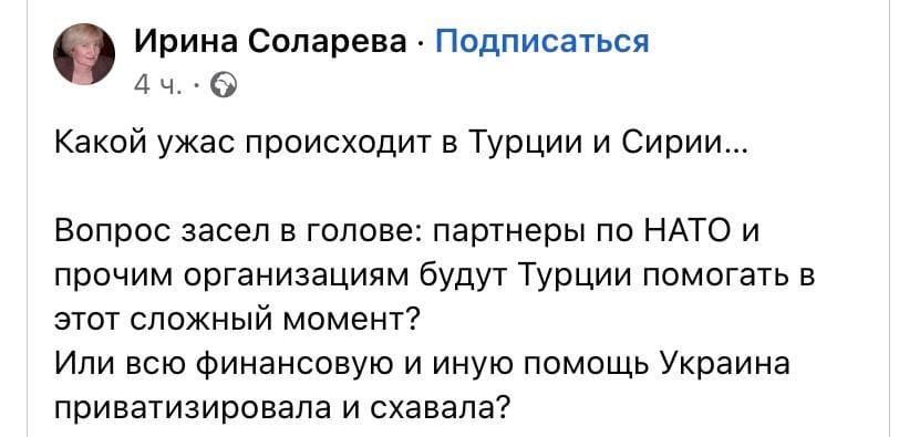"Только что Reuters сообщил, что количество жертв в Турции и Сирии превысило 2400 человек. Таких разрушительных землетрясений не было с 1939 года."