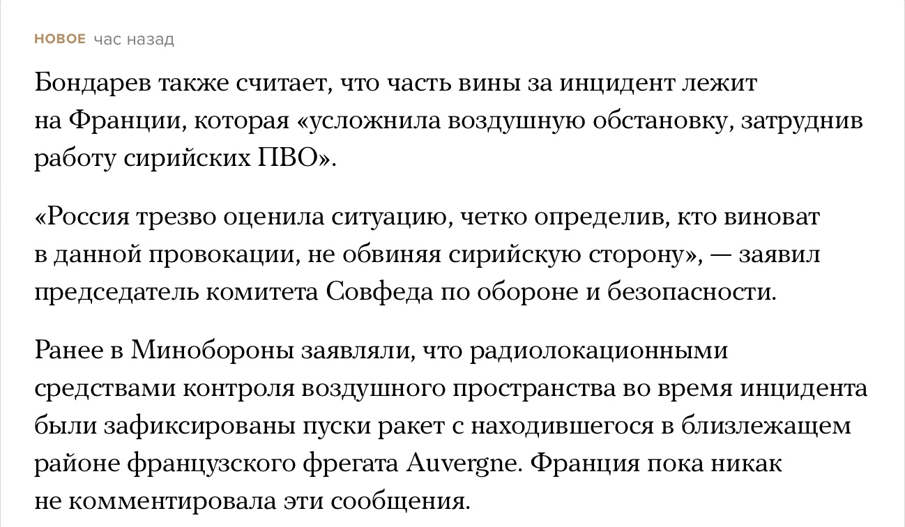 - Массированный и неточный огонь сирийских ЗРК привел к попаданию по российскому самолету и его падению.