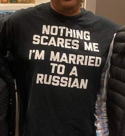 Надпись на майке "Меня ничем не испугать, я женат на русской"
