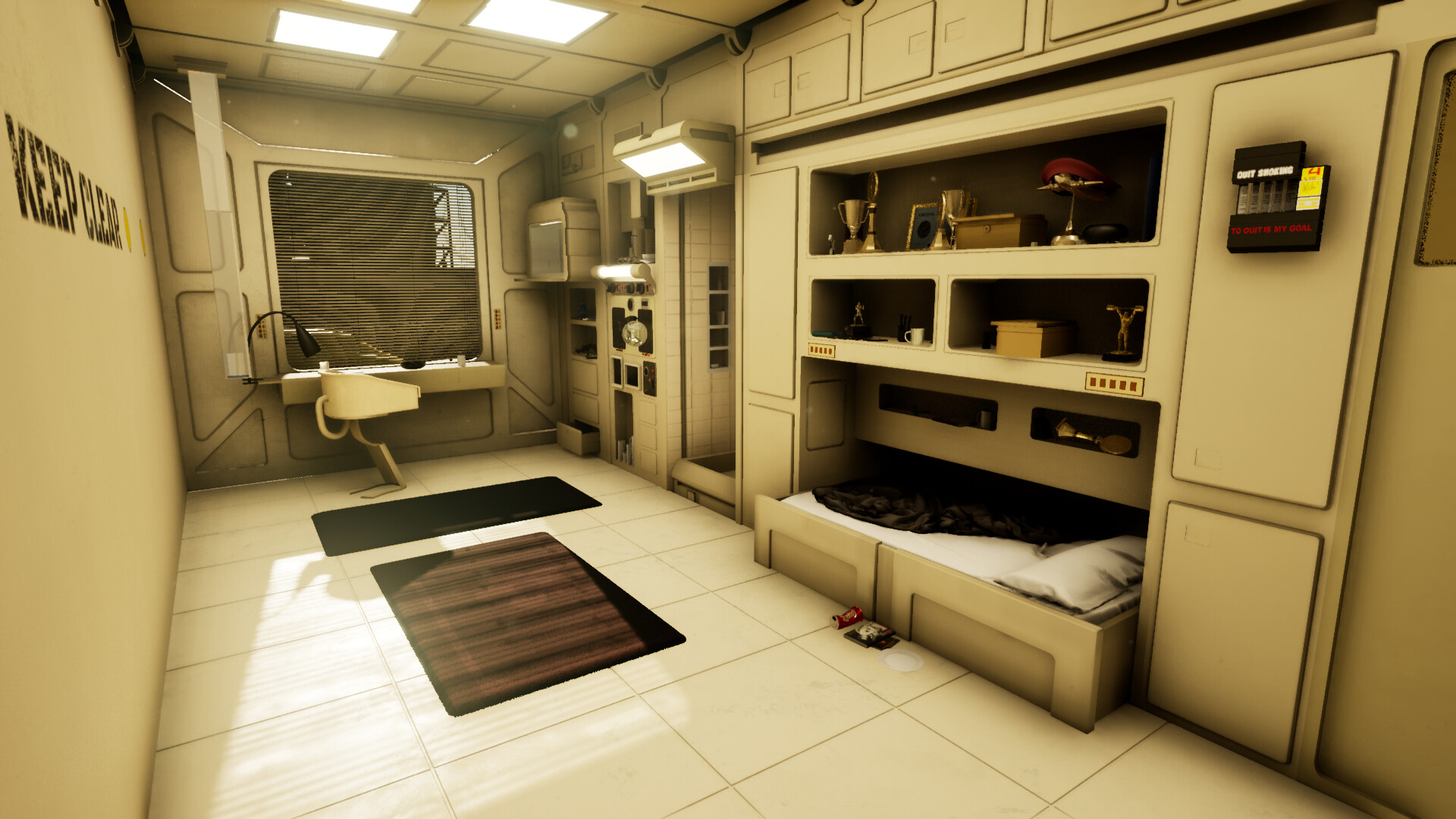 Обычно в таких конурах кровать под потолком или выпадающая из стены