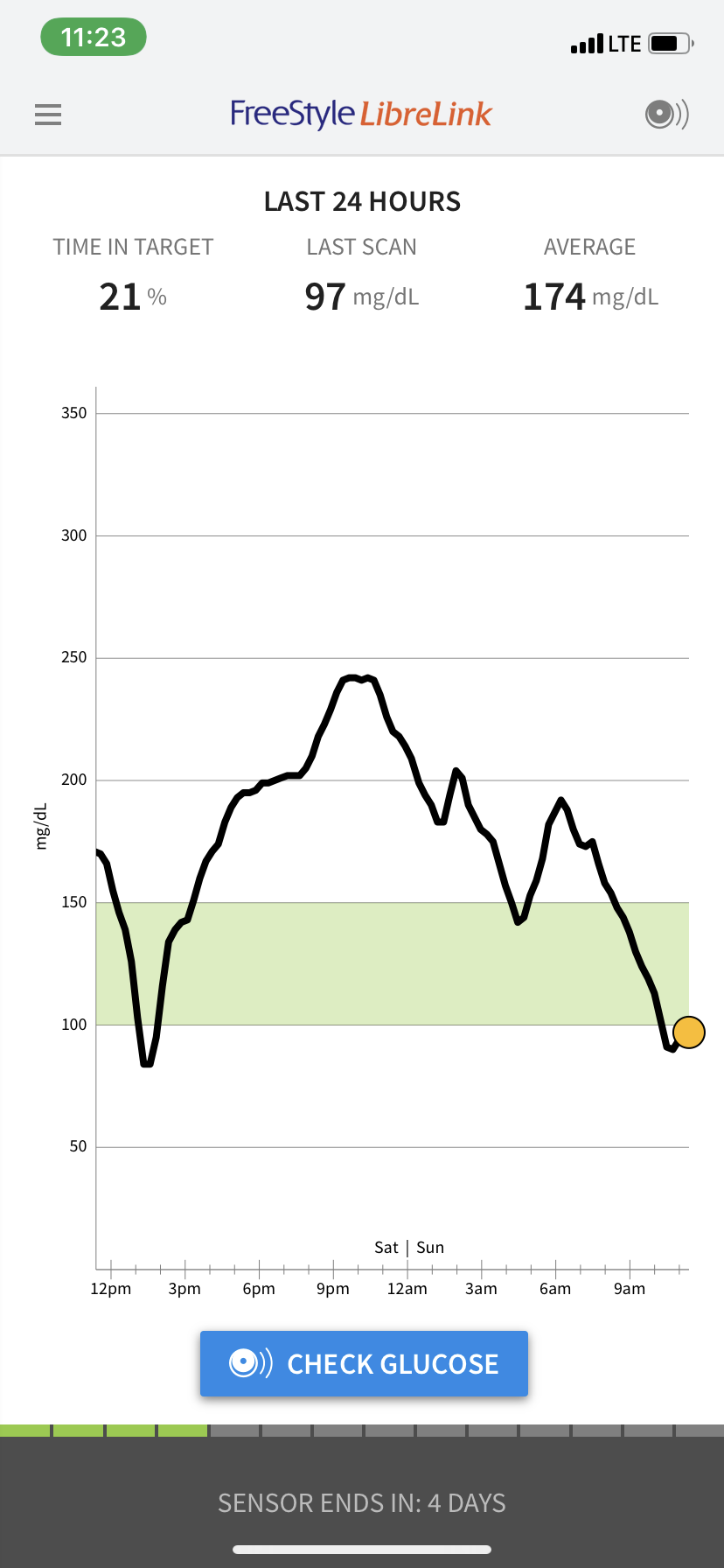 Вот в выше процитированном я отлично убедился на самом себе. Я где-то два с половиной года использую систему питания с минимальным потреблением углеводов (только из овощей), нормальным потреблением белков и с насыщенным потреблением жиров - как животных, так и растительных. На уровень сахара это влияет очень заметным образом. Во-первых, я в два раза снизил дозу метформина и по ощущениям через некоторое время и вовсе смогу от него отказаться, только я не хочу этого делать. Во-вторых, под нагрузкой (то есть через два часа после еды) у меня сахар не только полностью в норме и за все это время он даже к верхней границе нормы не поднимался, не говоря уж о том, чтобы за нее выходить, а обычно на уровне 6,4 - 6,6. Ну и, что самое главное, с добавлением еще и периодического голодания (ежедневно 18-часовой перерыв в питании) у меня утренний сахар, который всегда был заметно повышен, наконец-то пришел в норму, и теперь утром редко бывает выше 6 (а обычно было 7-9).