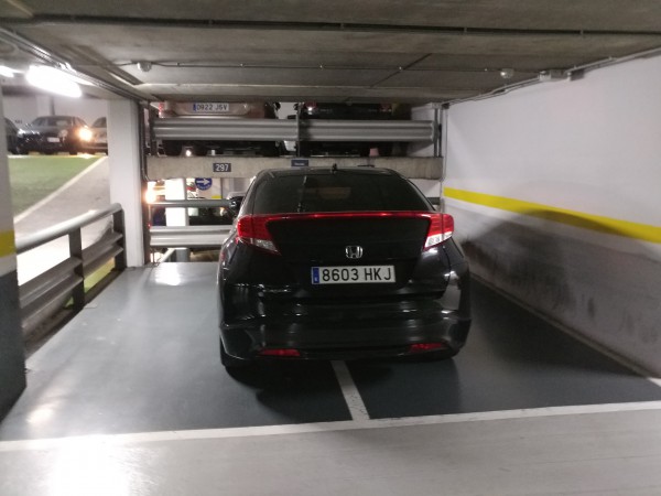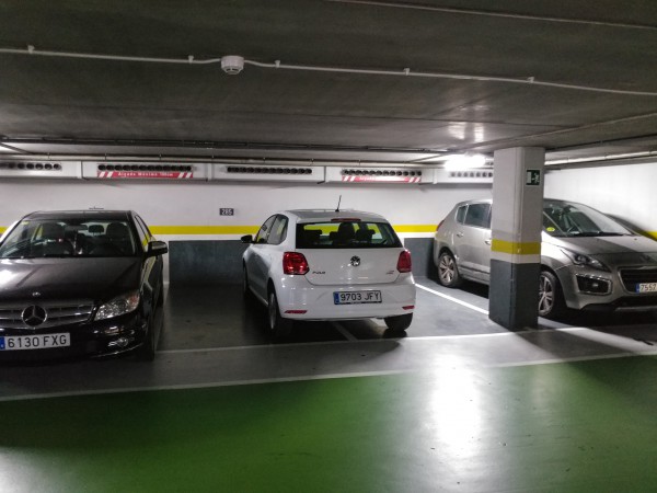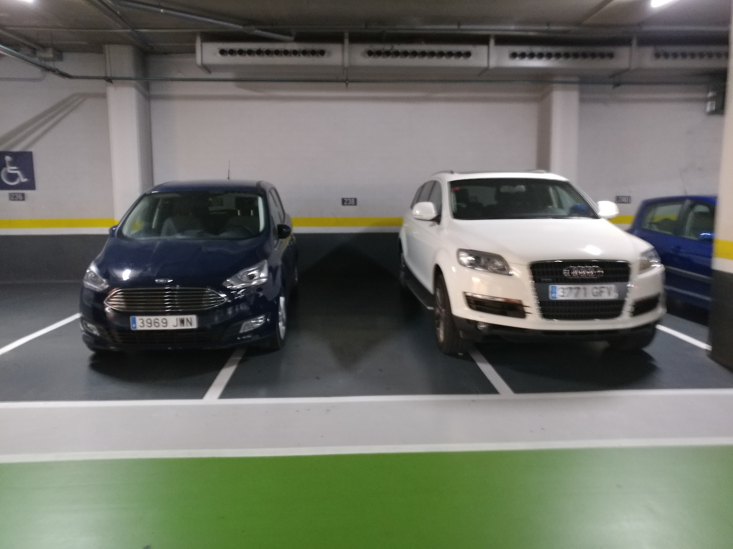 В Испании это реалии такие, учись парковаться так, чтобы не вылезать за границы твоего парковочного места. (Я понимаю еще, когда здоровенный внедорожник, но они криво паркуются и на маленьких машинках.)