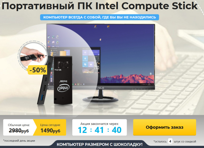 Прислали ссылку на сайт, на котором за подозрительно небольшие деньги предлагается "портативный компьютер", причем сама модель - вполне известная, и это действительно компьютер размером с шоколадку, который любой телевизор или монитор превращает в неплохой ПК для решения обычных задач.