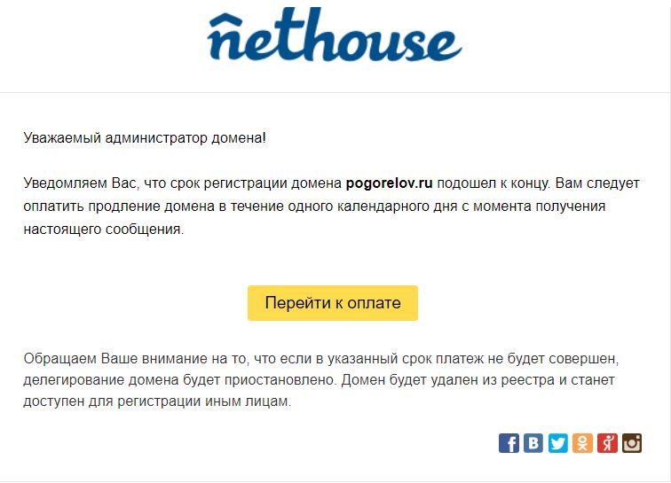 По ссылке "Перейти к оплате" открывается форма оплаты Яндекс.Денег с номером кошелька жулика. Причем еще и очень жадного жулика, потому что 4110 за продление домена - тут даже до тупого дойдет, что это развод.