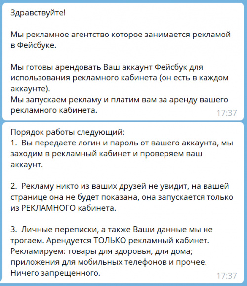 Жулье с "арендой аккаунта Facebook"