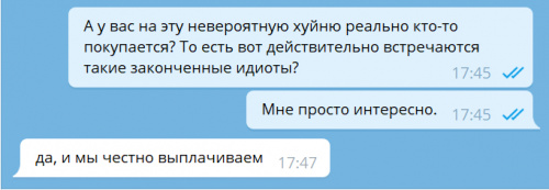 Ну и я когда проржался, спросил, действительно ли на такую бредятину кто-то покупается? Ответ также был очень трогательным. Они честно выплачивают.