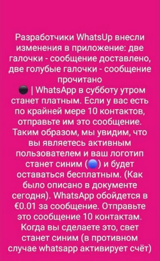 Странно, что только сейчас об этой дурилке написали в СМИ - мне раз в полгода точно кто-нибудь да и пришлёт данное сообщение на ВатсАпп. И так на протяжении последних лет 4-5... Приходится успокаивать наивных ?