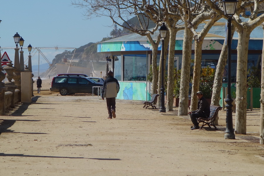 Я на прогулку обычно одеваюсь, как британ: хожу я очень быстро, так что стандартная форма одежды - майка и шорты. В таком виде на обратном пути очень хорошо зайти в магазин и завести с кассиршей разговор о том, какая жара сегодня на улице. Кассирша фигеет, а некоторые бабушки-каталанки из очереди пытаются предложить мне денег, чтобы я купил себе пальтишко.