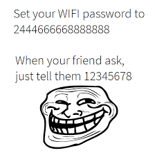 хорошая хохма - поставить пароль "2444666668888888" и на вопрос, какой пароль, отвечать "Один два три четыре пять шесть семь восемь"