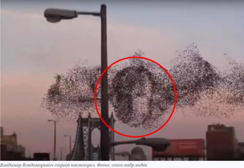 На «демонстрацию» тогда обратила внимание газета Вашингтон пост (Washington Post), посчитав «портрет» знамением – своего рода обращением к американцам. В то время санкционное давление на Россию в очередной раз усилилось без всяких на то причин. И толкователи знамения увидели в нем знак того, что не стоило бы так злобно мстить нашей стране, а тем более вынашивать планы войны с ней. Вняли бы тогда, может быть, сейчас в мире было бы гораздо спокойнее. Справедливости ради стоит отметить, что некоторые пользователи интернета увидели в изображении, сотканном птицами, портреты и других весьма известных персонажей - Стива Джобса, одного из основателей корпорации Apple, актера Робина Уильямса и даже бывшего премьер-министра Украины Арсения Яценюка. Неужели Путин так на них похож?