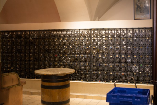 Классика - шкафчики с персональными кружками постоянных посетителей.