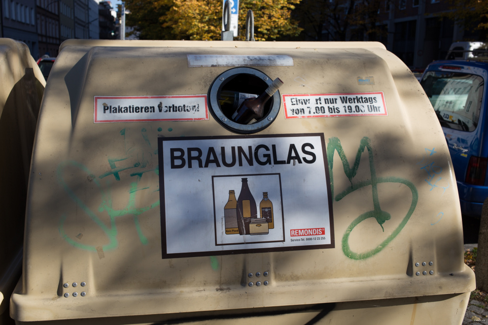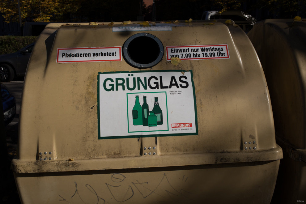 Немцы - люди педантичные. Тут не просто отдельные емкости для стеклянной посуды, а емкости для коричневого стекла, зеленого и прозрачного! Убиться можно.
