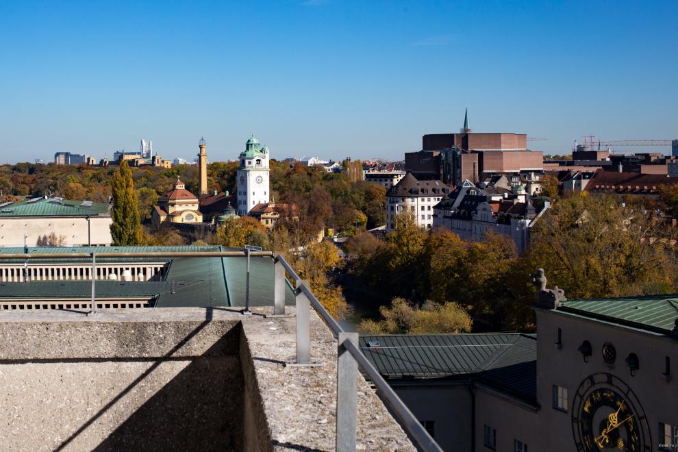 видны башенки Петерскирхе - старейшей церкви Мюнхена.