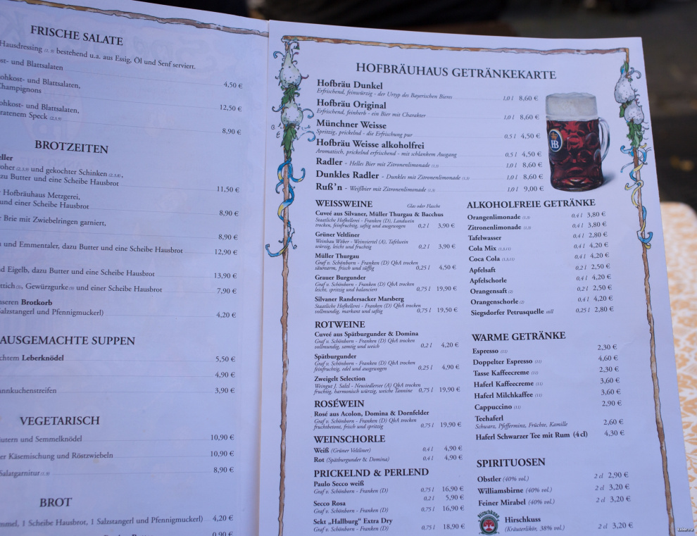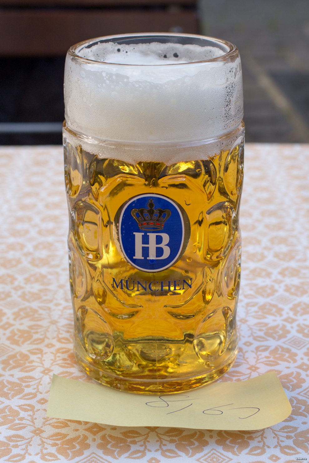 И хоть я пиво давно уже не пью, не мог не заказать литрушечку светлого хофброя! 8,60 евро, кстати, стоит, под 600 рублей кружечка. Но за такое пиво можно душу продать - действительно совершенно замечательное.