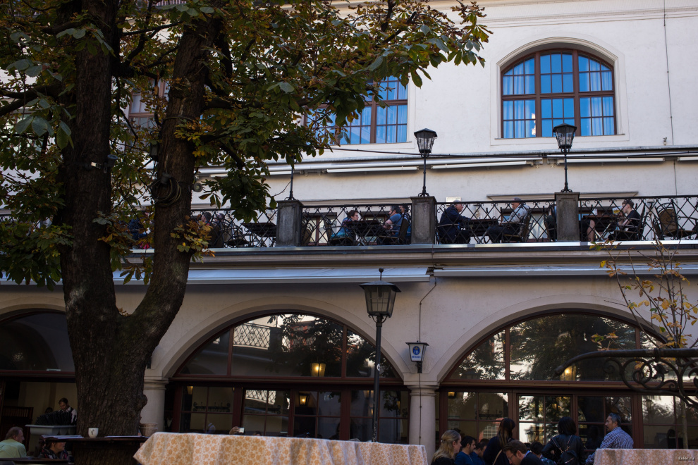 Суперклассика - Хофбройхаус, то есть Придворная пивоварня. Расположена на площади Плацль, известна на весь мир. Разумеется, я не мог туда не заглянуть.