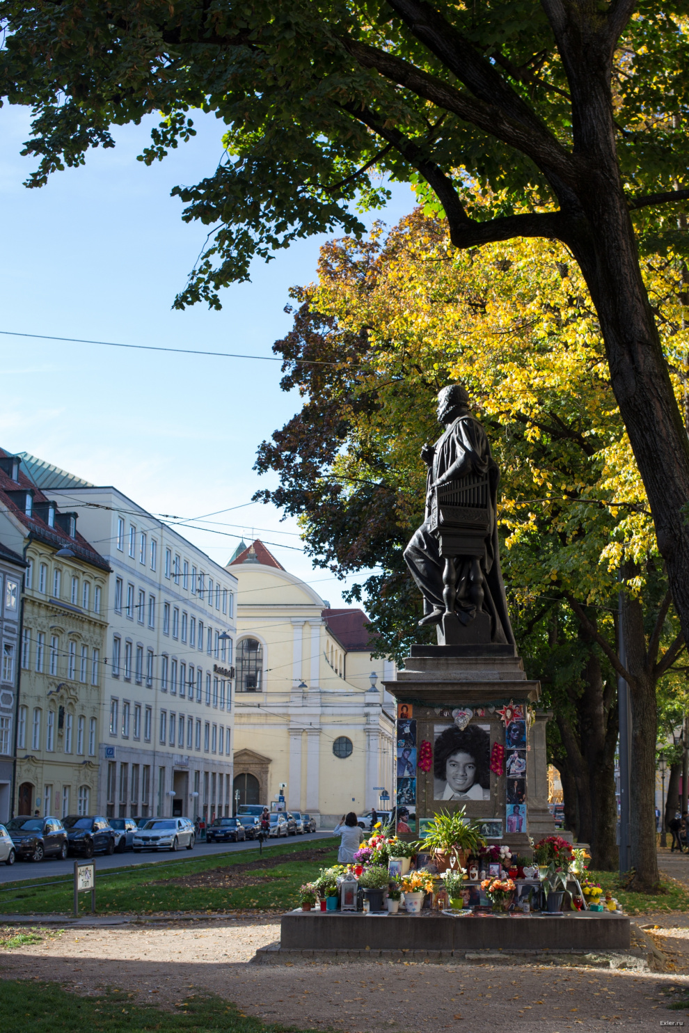 Чудесный скверик имени Майкла Джексона - его очень почитают в Мюнхене.