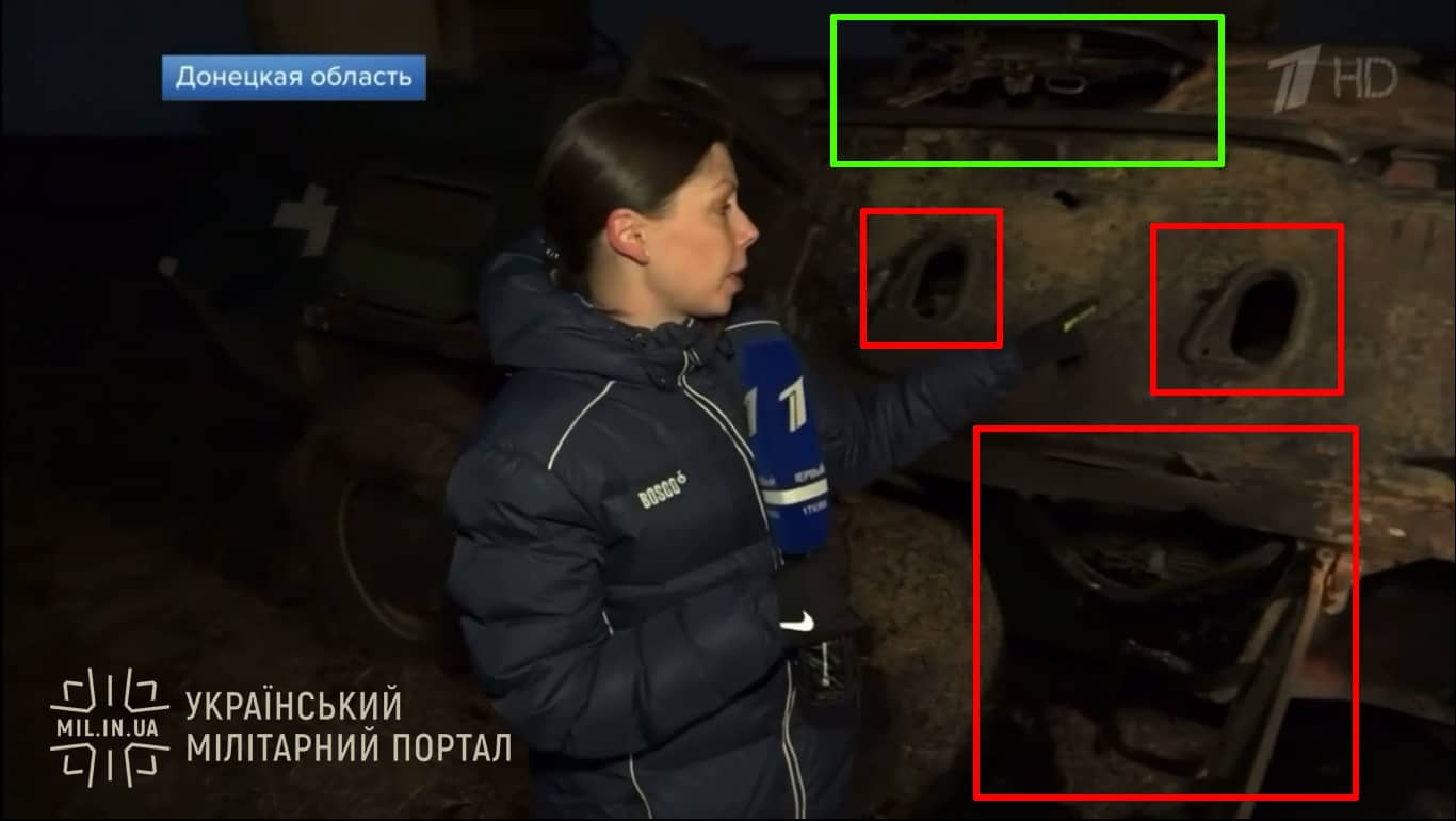При этом задняя часть бронетранспортера из сюжета имеет характерные для БТР-80 корпусные черты, что указывает на изменения в конструкции с целью размещения одного двигателя вместо двух ГАЗ-4905.