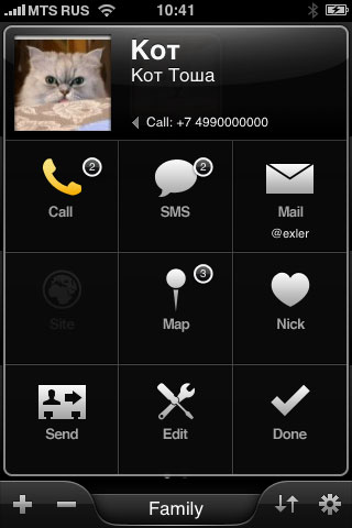 Потестировал всякие быстрые звонилки для iPhone - такие, где можно поставить аватар (фото) и по нему вызывать абонента. Раньше у меня была звонилка из Cydia, которая позволяла ставить аватары прямо на десктоп как пиктограммы программ. В iTunes Store таких программ вроде как нет - Apple вероятно запрещает. И правильно на самом деле делает, потому что при таком размещении аватаров-пиктограмм велика вероятность случайно вызвать абонента.