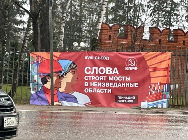 Руководитель пресс-службы КПРФ Александр Ющенко в беседе с радиостанцией «Говорит Москва» назвал размещение плаката «методами демонов». Он уточнил, что полотно повесили за территорией учреждения, а затем его демонтировали коммунисты.